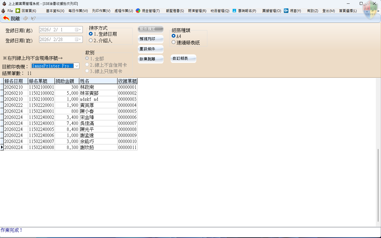 列印作業 > 法會收據批次列印