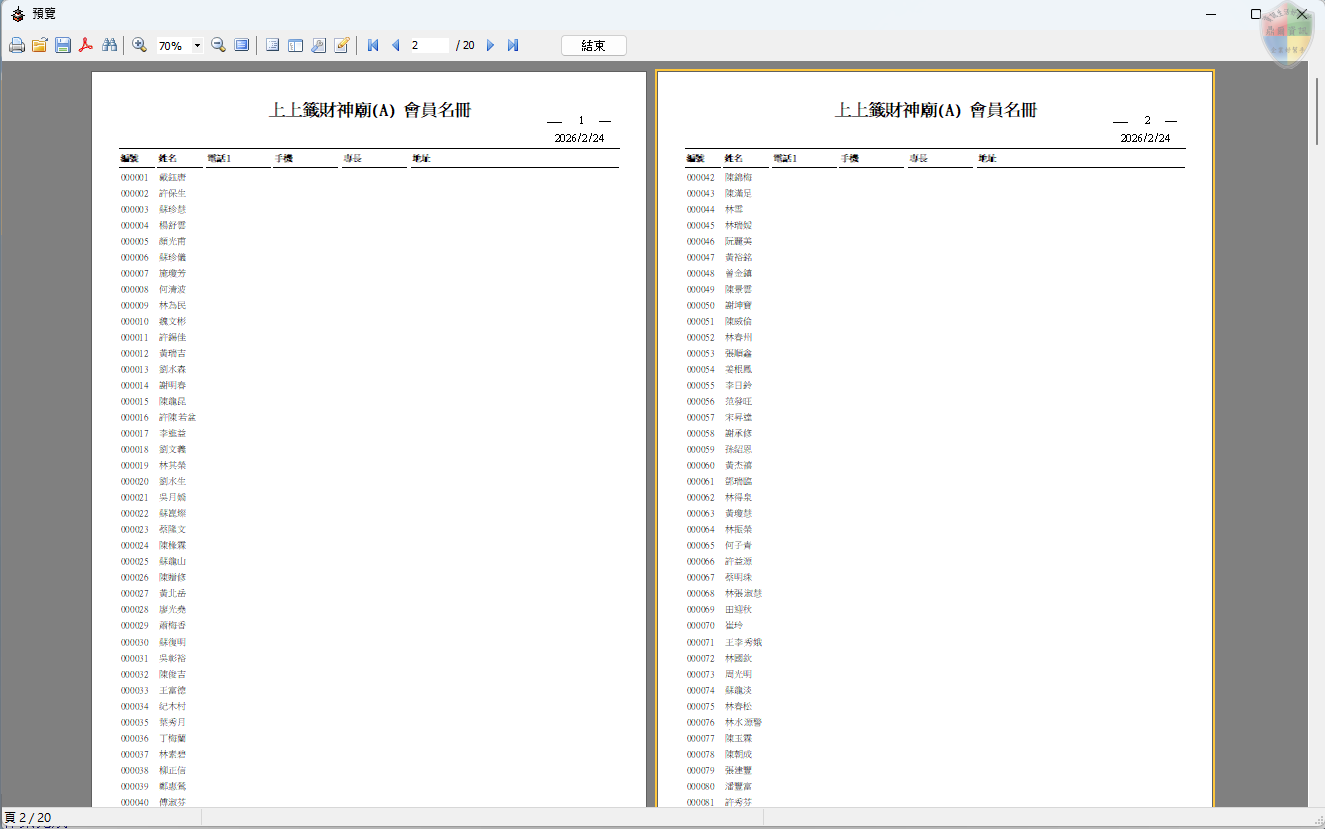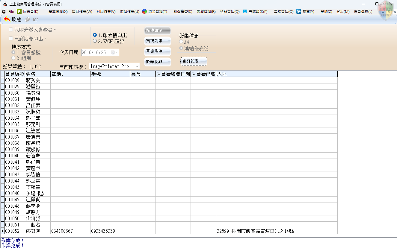 列印作業 > 會員名冊